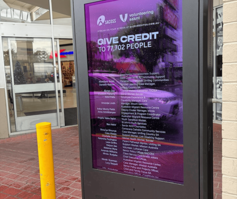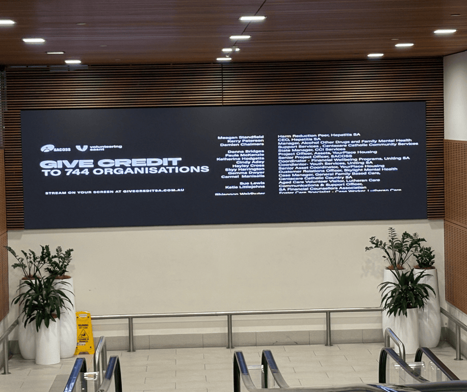 • We ask organisations and businesses to show their support for South Australia’s community service staff and volunteers by displaying the credit roll on their office and public facing screens