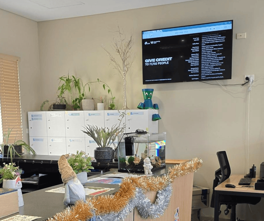 Ramp up excitement about the campaign in your workplace by linking the credit roll at givecreditsa.com.au to your screens in boardrooms, reception, meeting rooms and other spaces.