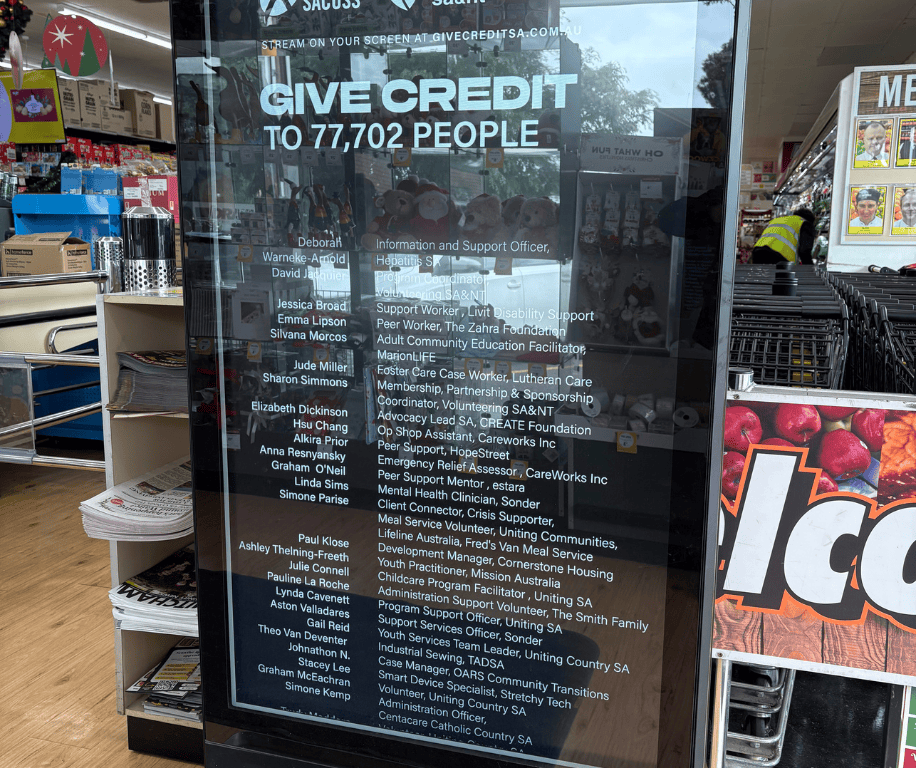 Please contact us if you’d like more details or to talk about getting your organisation involved: givecredit@sacoss.org.au